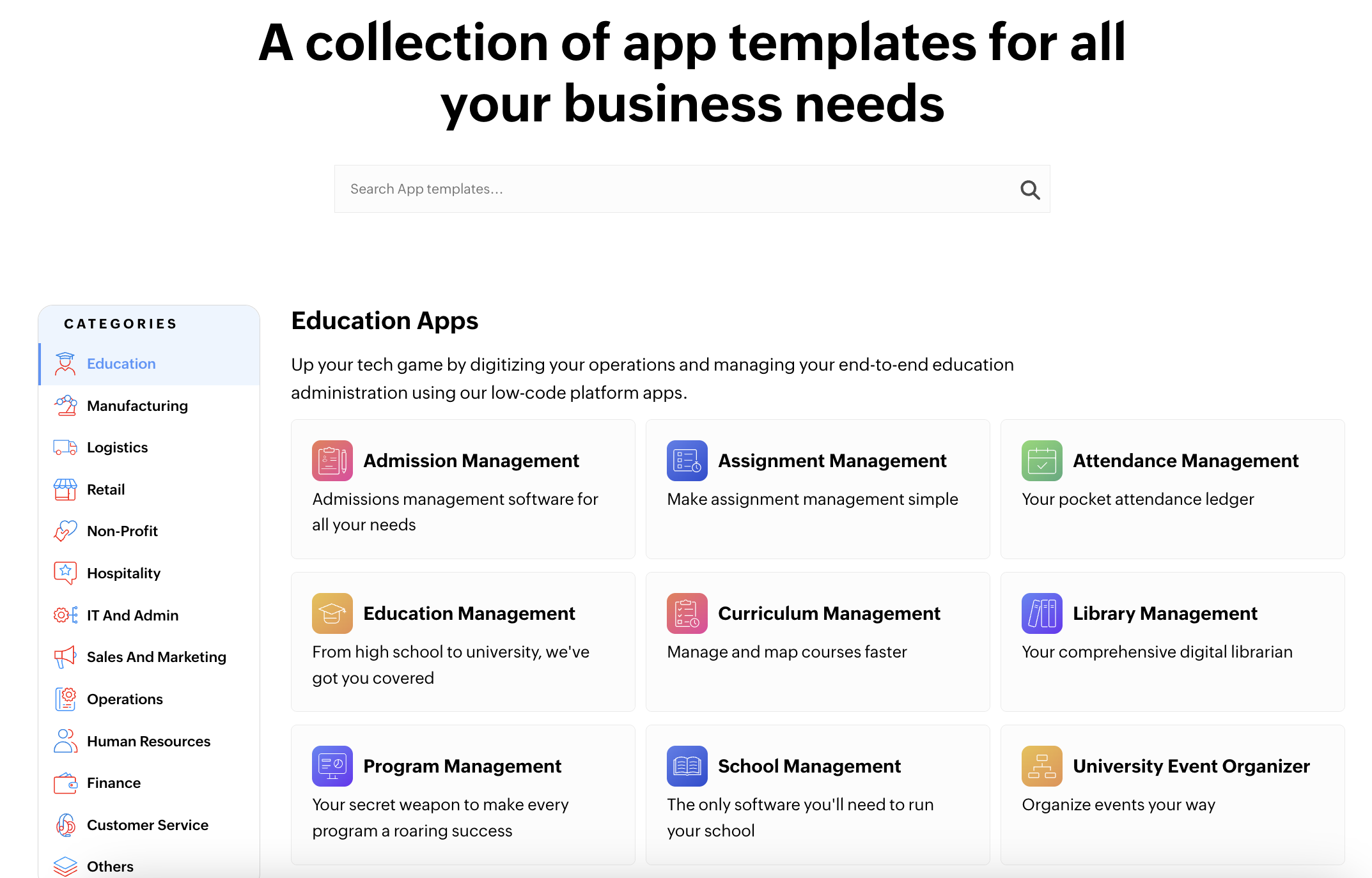 Die Vielfalt der verfügbaren Apps zeigt, dass Zoho Creator branchenübergreifend funktioniert. Besonders profitieren: